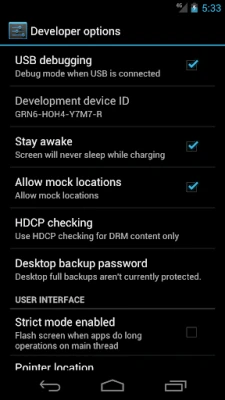 Developer options